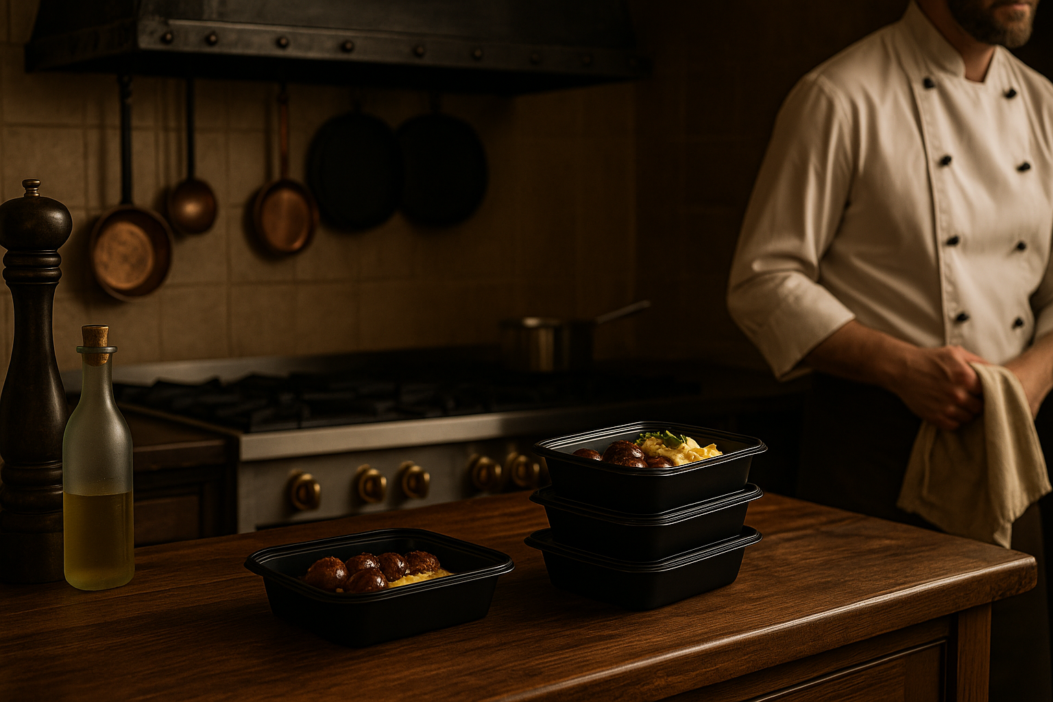 Vi lagar maten, packar den i robusta matlådor och levererar enligt överenskommelse.