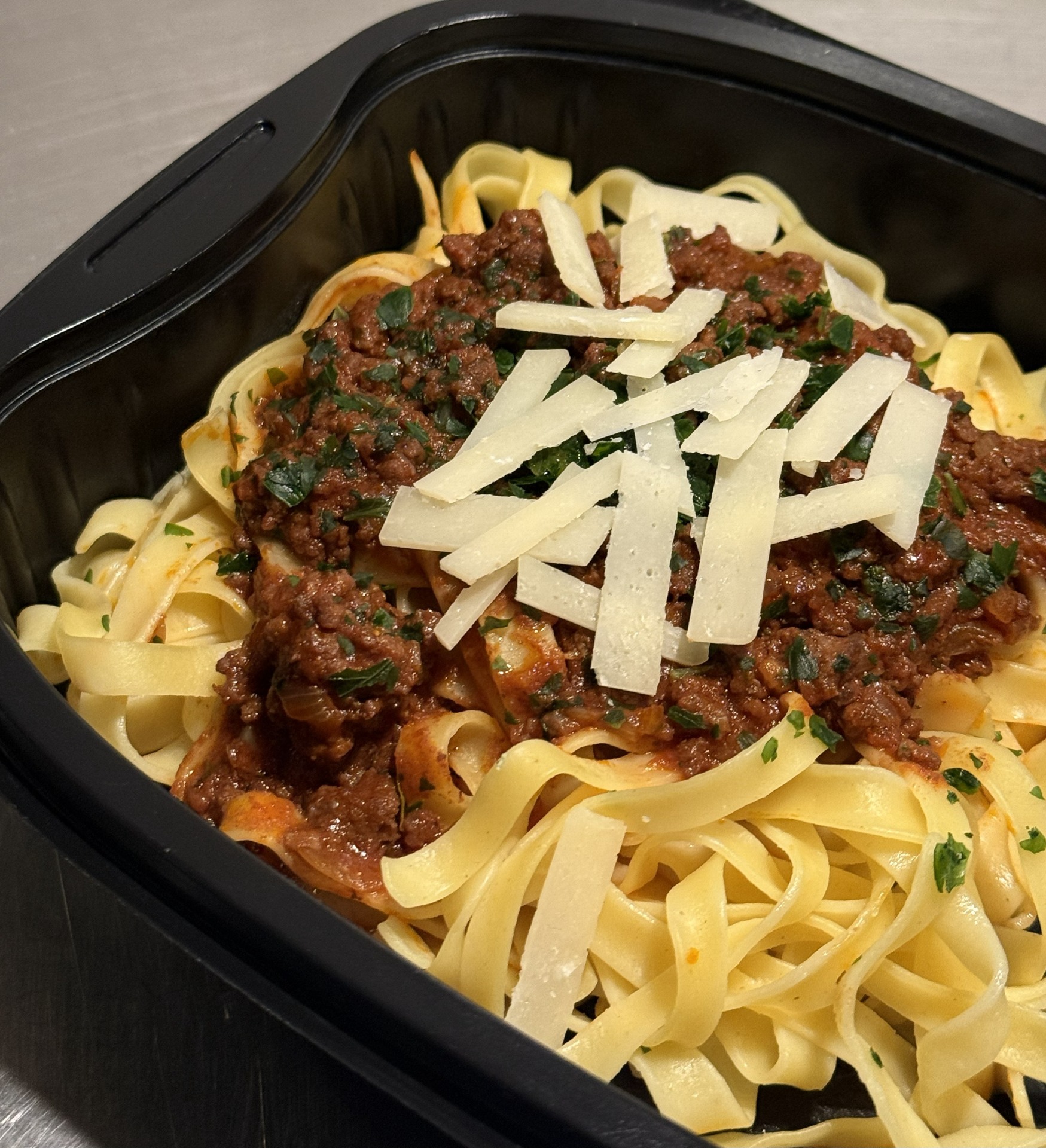 Långkokt köttfärssås på nötfärs, tomat, selleri, vitlök och rödvin.